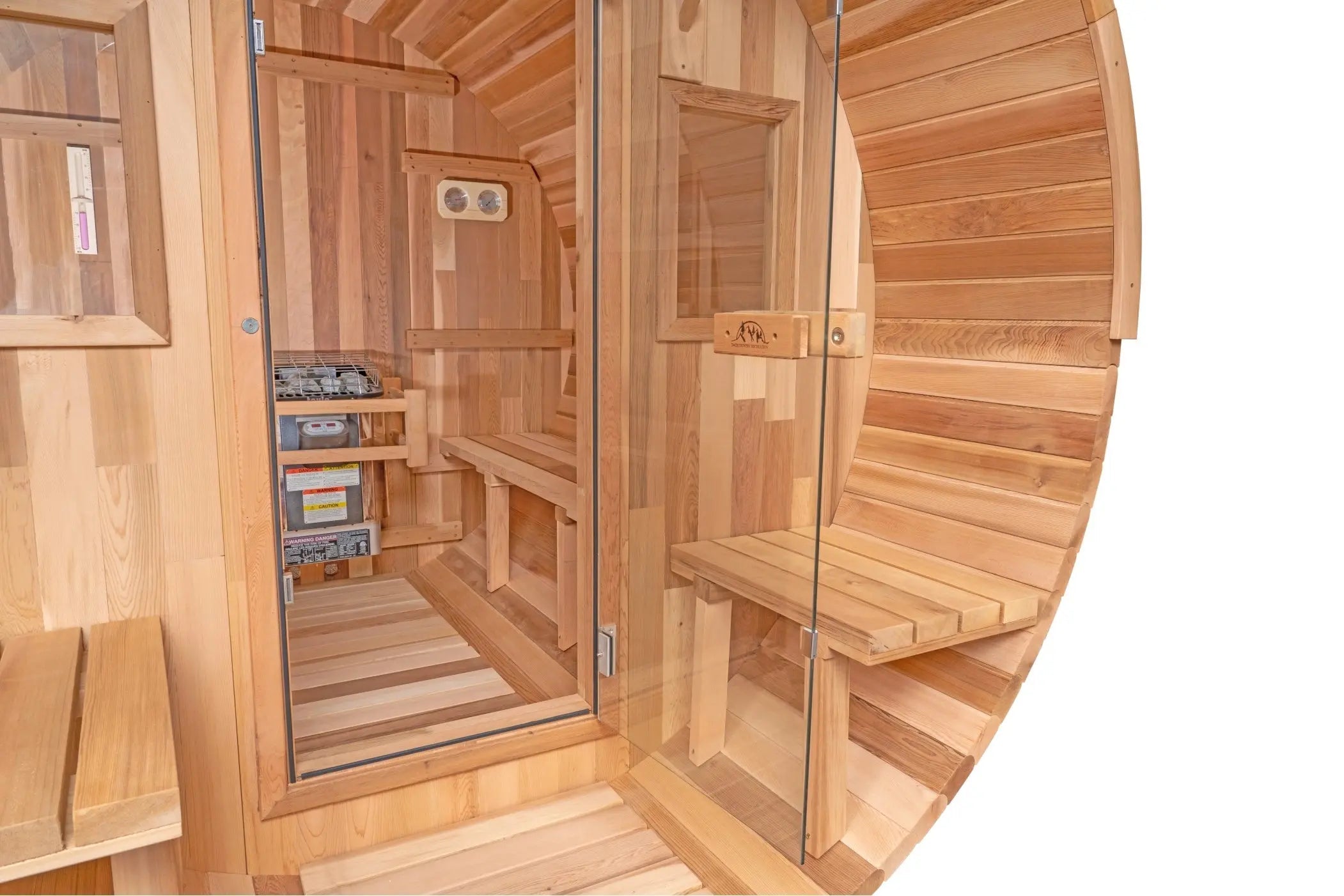 These saunas will heat quickly--to as much as 195 F (90 Celsius) in under an hour. Every Backcountry barrel sauna comes with either a wood-fired or electric stainless steel heater, water bucket & ladle, sauna rocks, and combination thermometer/hygrometer so that you may begin enjoying the authentic sauna experience as soon as the assembly is complete.