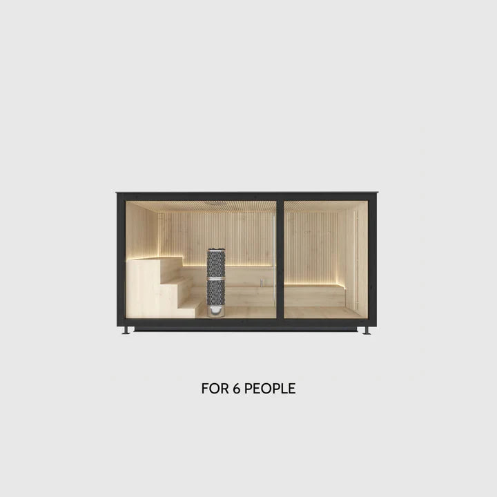 Both saunas are equipped with one high quality IKI stoves. Add finishing touches to the exterior and interior by choosing from three different colors: Natural Wood, Black, and Bark. You can also choose between clear or mirror panorama window for your sauna.